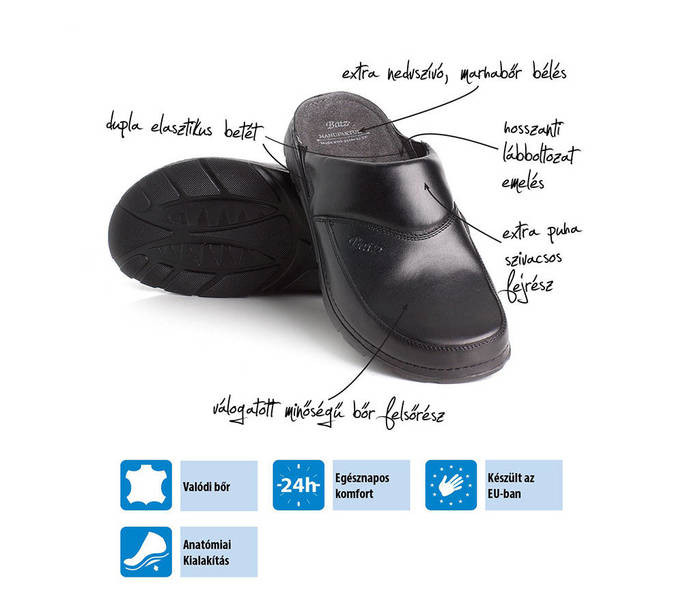 Fekete színű Batz Peter Fekete férfi papucs. Felsőrészének az anyaga: Valódi bőr felsőrész