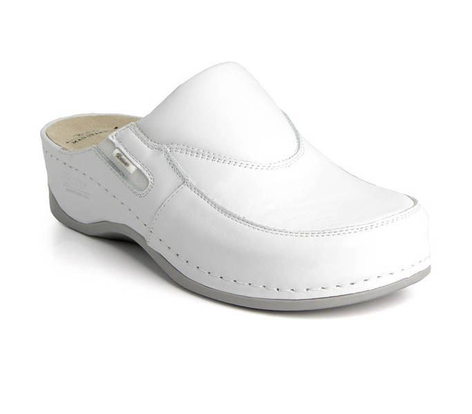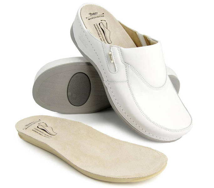 Fehér színű Batz FC10 fehér női papucs. Felsőrészének az anyaga: Valódi bőr felsőrész