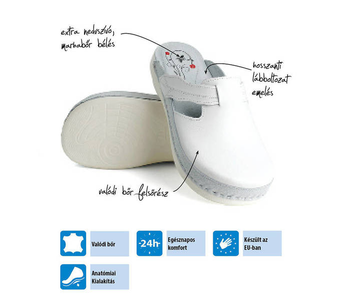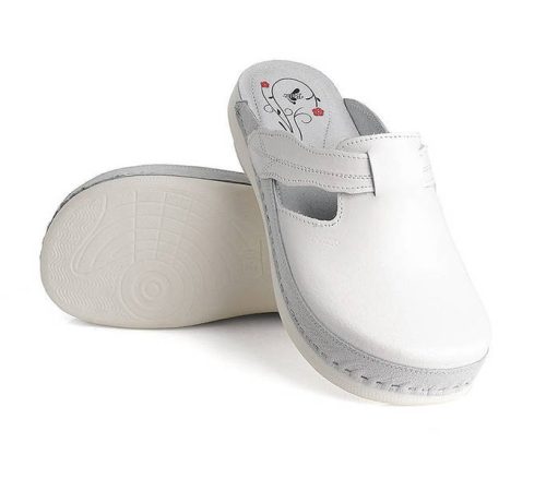 Fehér színű Batz Flower fehér női papucs. Felsőrészének az anyaga: Valódi bőr felsőrész