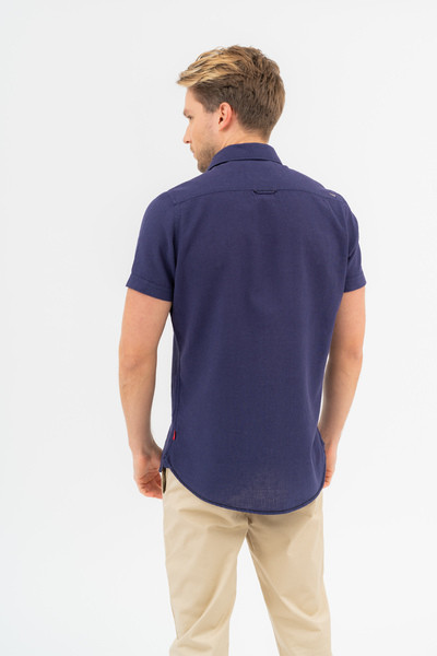 Modern fit rövid ujjú férfi ing. Enyhén szűkített fazon. Hímzéssel és szövött címkével díszítve.