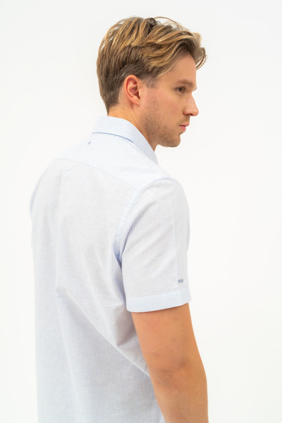 Modern fit rövid ujjú férfi ing . Enyhén szűkített fazon . Hímzéssel és szövött címkével díszítve.