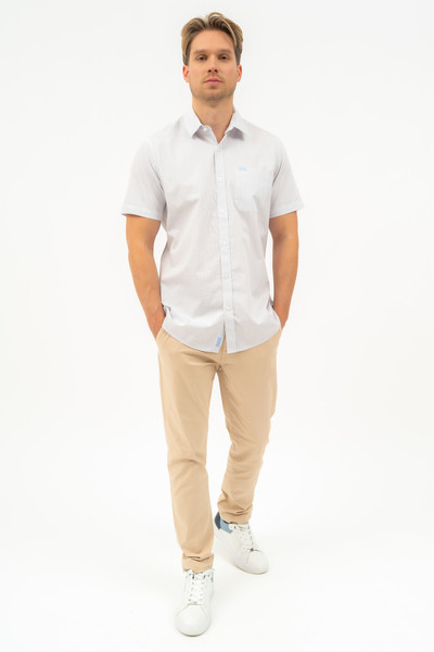 Regular fit rövid ujjú férfi ing . Egyenes szabású fazon . Szövött címkével díszítve.
