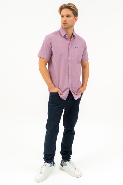 Regular fit rövid ujjú férfi ing . Egyenes szabású fazon . Szövött címkével díszítve.