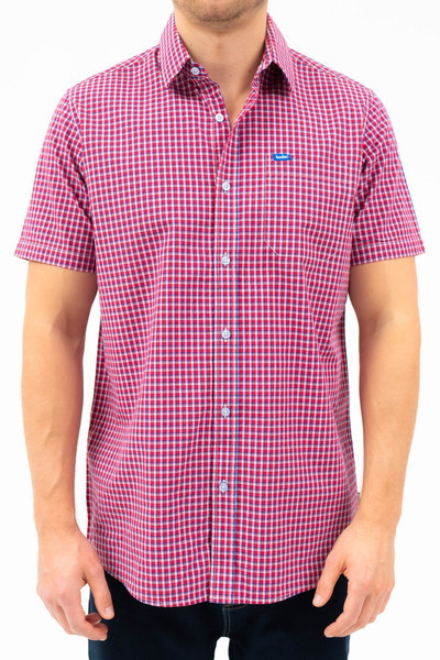 Regular fit rövid ujjú férfi ing . Egyenes szabású fazon . Szövött címkével díszítve.