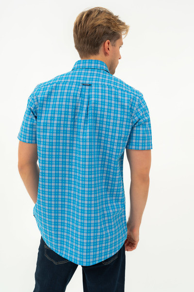 Regular fit rövid ujjú férfi ing . Egyenes szabású fazon . Szövött címkével díszítve.
