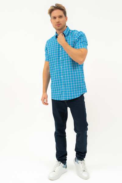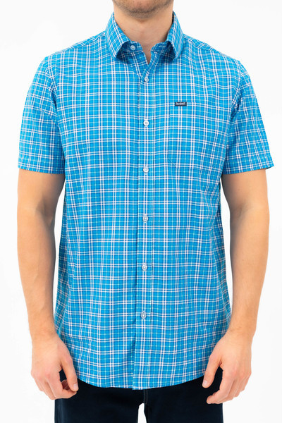 Regular fit rövid ujjú férfi ing . Egyenes szabású fazon . Szövött címkével díszítve.