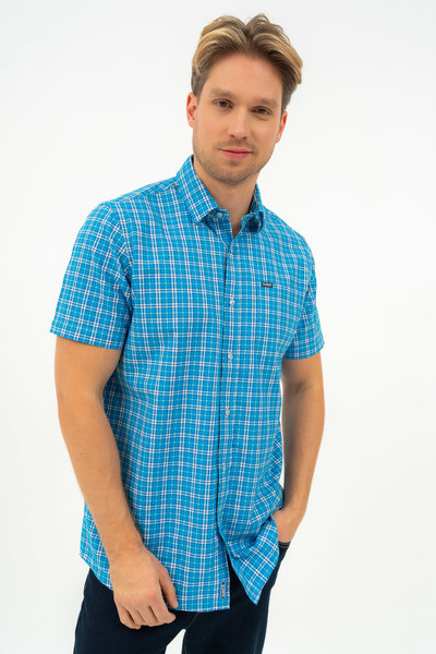 Regular fit rövid ujjú férfi ing . Egyenes szabású fazon . Szövött címkével díszítve.