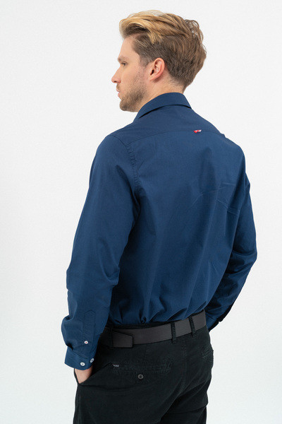 Modern fit hosszú ujjú férfi ing . Enyhén szűkített fazon. Hímzéssel és szövött címkével díszítve.