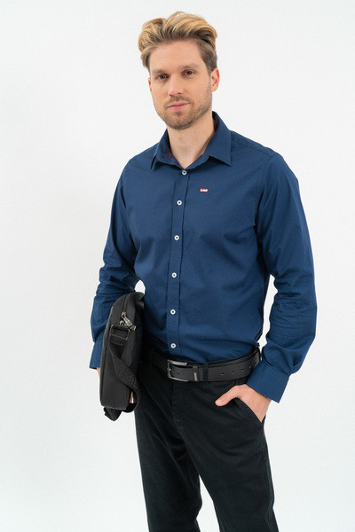 Modern fit hosszú ujjú férfi ing . Enyhén szűkített fazon. Hímzéssel és szövött címkével díszítve.