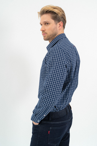 Modern fit hosszú ujjú férfi ing . Enyhén szűkített fazon. Hímzéssel és szövött címkével díszítve.