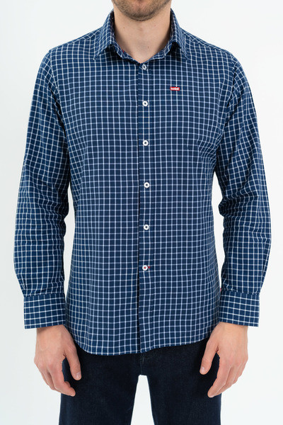 Modern fit hosszú ujjú férfi ing . Enyhén szűkített fazon. Hímzéssel és szövött címkével díszítve.