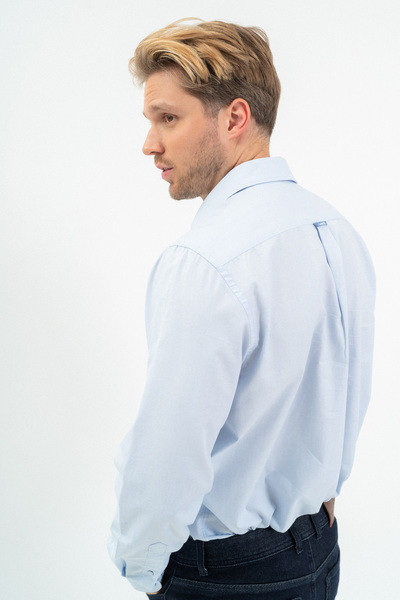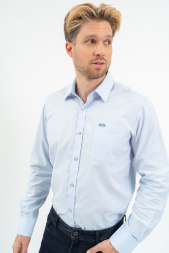 Regular fit hosszú ujjú férfi ing . Egyenes szabású fazon. Szövött címkével díszítve.