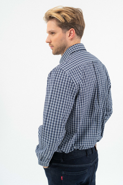 Regular fit hosszú ujjú férfi ing . Egyenes szabású fazon. Szövött címkével díszítve.