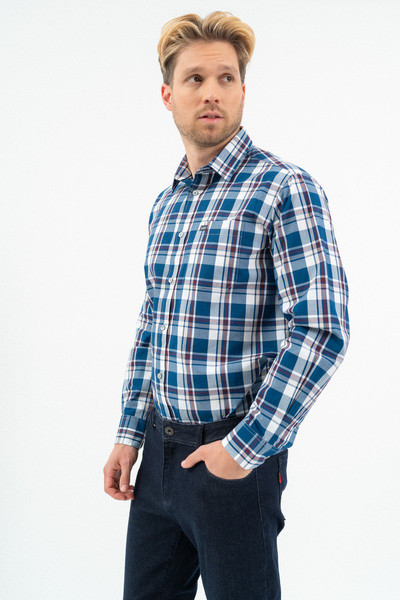 Regular fit hosszú ujjú férfi ing . Egyenes szabású fazon. Hímzéssel és szövött címkével díszítve.