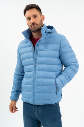 Férfi steppelt vékony dzseki .Kapucni lecipzározható.Belső zsebek.Gumicímkékkel díszítve.