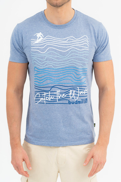 v.kék melír színű Budmil Póló - B20300439-002 férfi Póló. Felsőrészének az anyaga: 60% pamut-40% poliészter