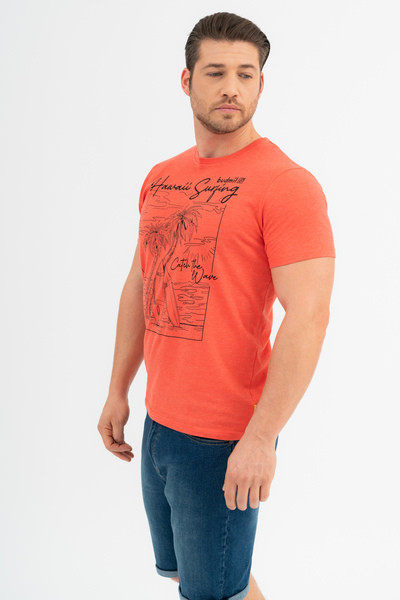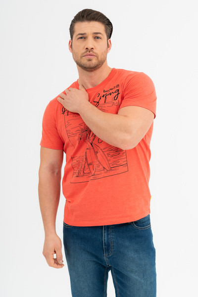 Modern fit férfi póló. Nyomott mintával díszített.