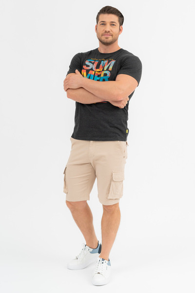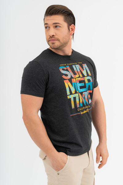 Modern fit férfi póló. Nyomott mintával díszített.