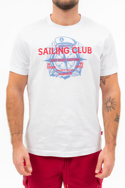 Regular fit férfi póló . Nyomott mintával díszített.