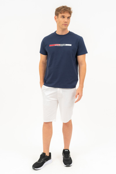 Regular fit férfi póló . Nyomott mintával díszített.