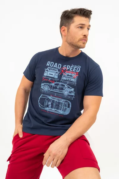 Regular fit férfi póló . Nyomott mintával díszített.