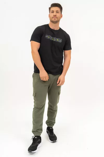Regular fit férfi póló . Nyomott mintával díszített.