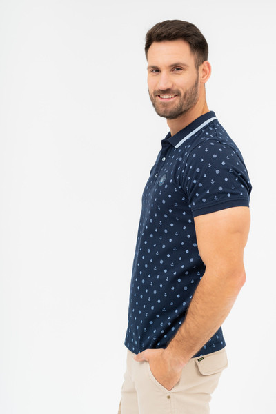 Modern fit férfi galléros póló. Szövött címkével díszített.