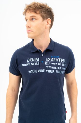 Modern fit férfi galléros póló . Nyomott mintával díszített.