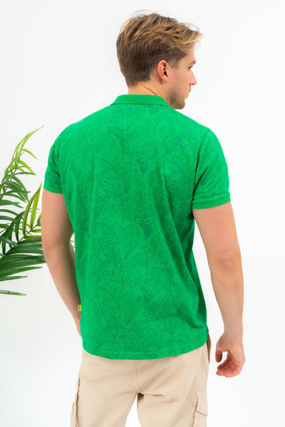 Modern fit férfi galléros póló . Nyomott mintával díszített.