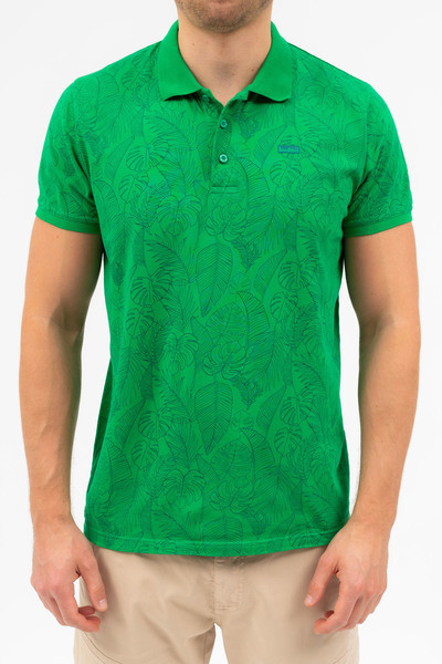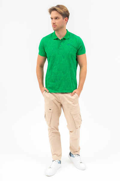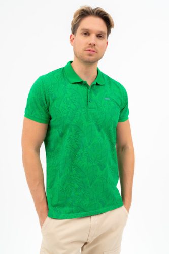 Modern fit férfi galléros póló . Nyomott mintával díszített.