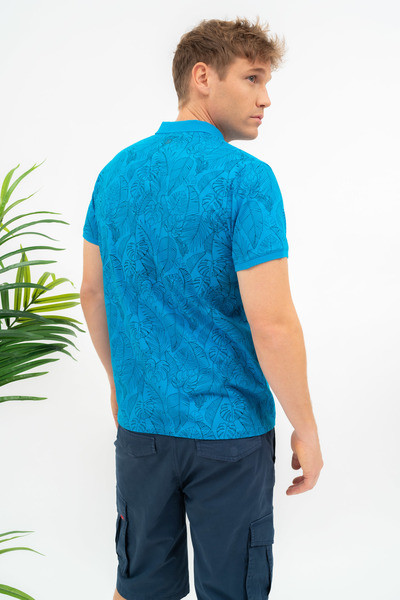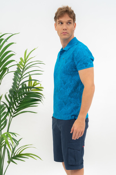 Modern fit férfi galléros póló . Nyomott mintával díszített.