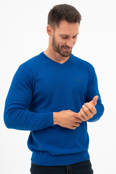 kék színű Budmil Kötött pulóver - B20050807-004 férfi Pulóver. Felsőrészének az anyaga: 100% pamut