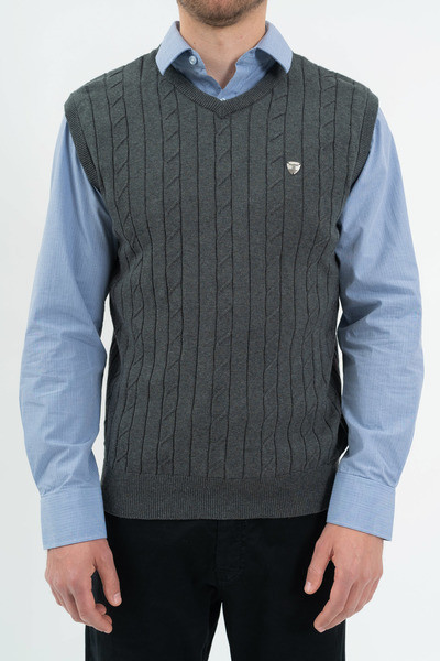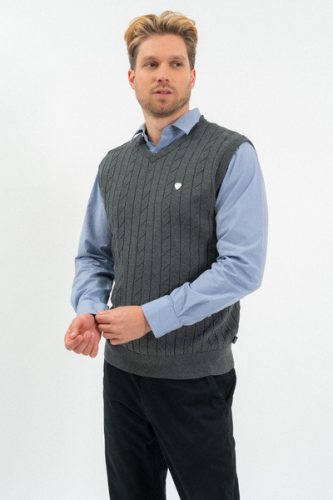 Férfi vékony kötött mellény. Fémcímkével díszítve.
