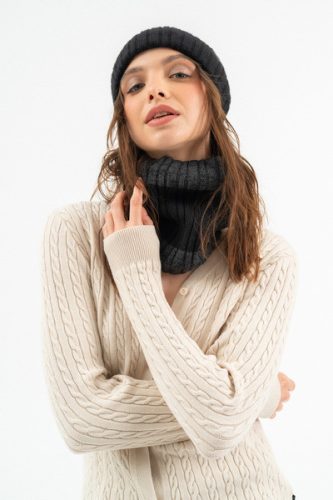 Körsál plüss béléssel. Műbőr címkével díszítve. Hozzáillő sapka: 20090371-003.