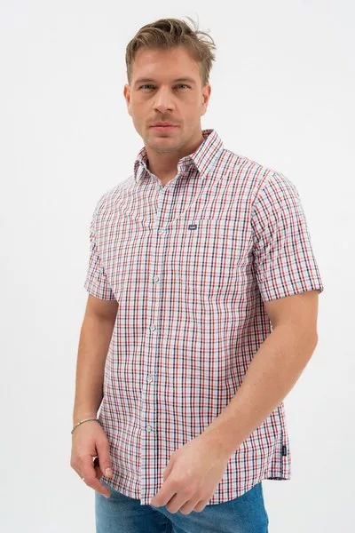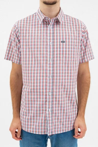 fehér-piros színű Budmil rövid ujjú ing - 20440273-002 férfi ing. Felsőrészének az anyaga: 100% pamut