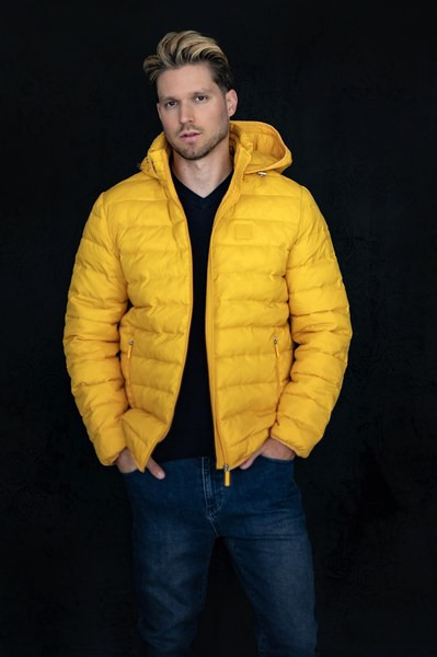 sárga színű Budmil átmeneti kabát - 20010131-001 férfi kabát. Felsőrészének az anyaga: 100% poliamid-100% poliészter