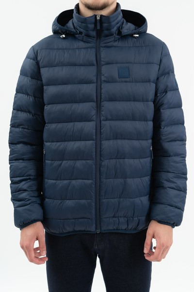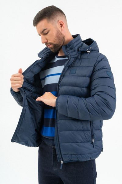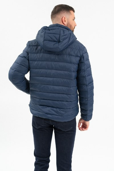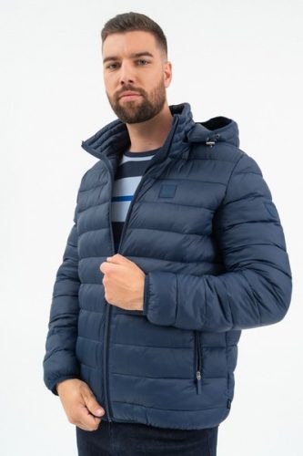 férfi steppelt vékony dzseki - kapucni lecipzározható - belső zsebek - gumicímkékkel díszítve