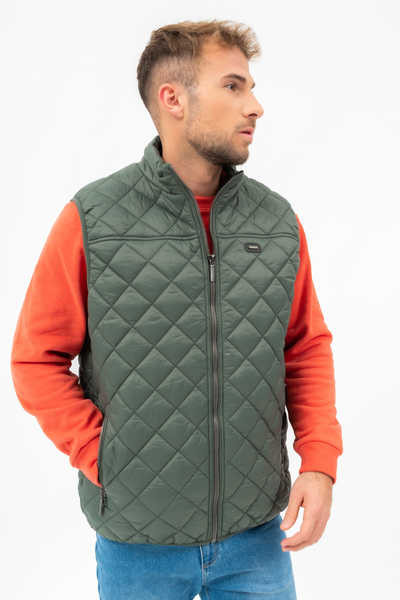 férfi steppelt vékony mellény - belső zsebek - fém címkével díszítve