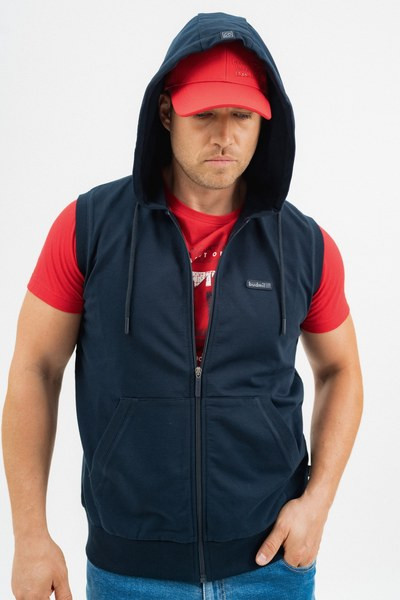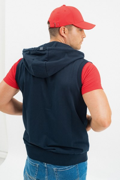 férfi kapucnis mellény rugalmas anyagból alapanyaga belül bolyhozatlan - gumicímkékkel díszítve<br> <br><p>