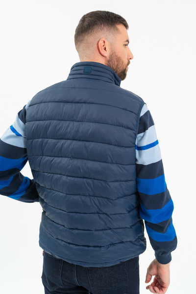 Férfi steppelt vékony mellény. Belső zsebek. Gumicímkékkel díszítve.