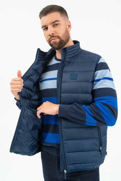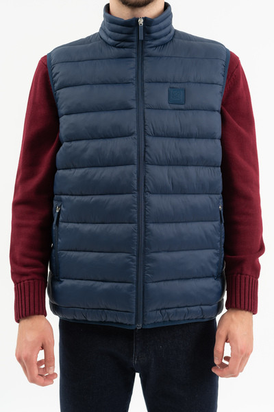 Férfi steppelt vékony mellény. Belső zsebek. Gumicímkékkel díszítve.