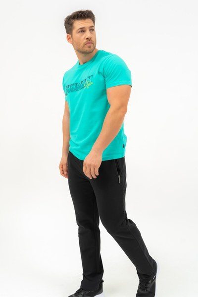 férfi szabadidőnadrág - rugalmas anyagból - alapanyaga belül bolyhozatlan - alja egyenes szárú - hímzett mintával díszítve