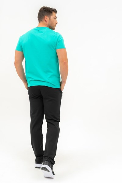 férfi szabadidőnadrág - rugalmas anyagból - alapanyaga belül bolyhozatlan - alja egyenes szárú - hímzett mintával díszítve