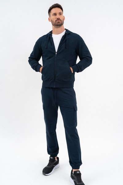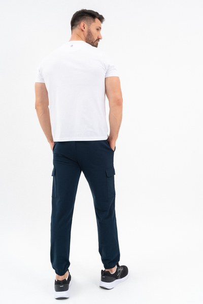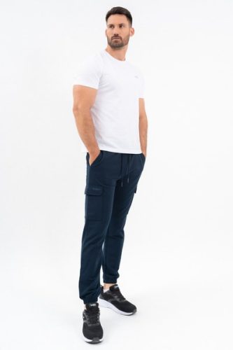 férfi oldalzsebes szabadidőnadrág - rugalmas anyagból - alapanyaga belül bolyhozatlan - alja enyhén gumizott - hímzett mintával díszítve