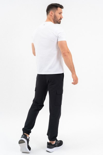 férfi oldalzsebes szabadidőnadrág - rugalmas anyagból - alapanyaga belül bolyhozatlan - alja enyhén gumizott - hímzett mintával díszítve