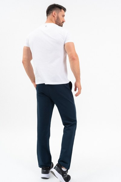 férfi szabadidőnadrág - rugalmas anyagból - alapanyaga belül bolyhozatlan - alja egyenes szárú - hímzett mintával díszítve