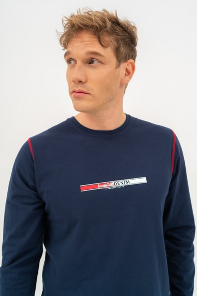s.kék színű Budmil vékony hosszú ujjú felso - 20250037-002 férfi póló. Felsőrészének az anyaga: 95% pamut-5% elasztán