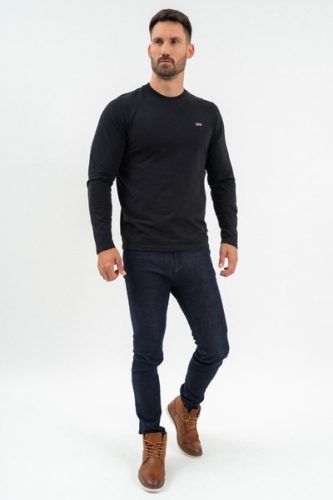fekete színű Budmil vékony hosszú ujjú felso - 20250046-002 férfi póló. Felsőrészének az anyaga: 95% pamut-5% elasztán