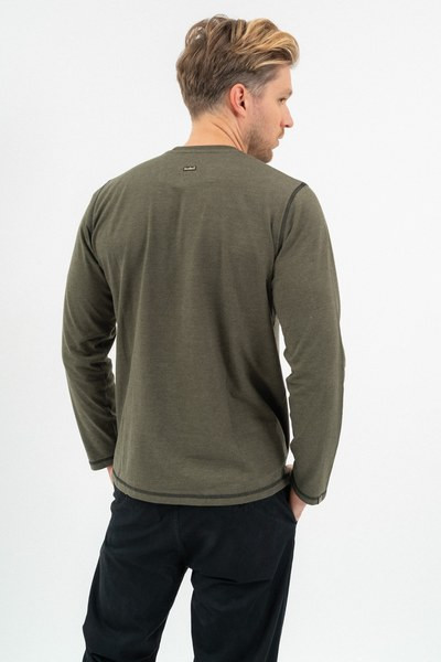 khaki színű Budmil vékony hosszú ujjú felso - 20250047-001 férfi póló. Felsőrészének az anyaga: 60% pamut-40% poliészter