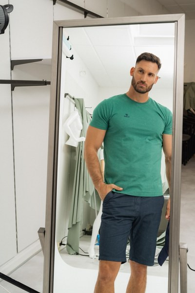 zöld melír színű Budmil póló - 20300451-002 férfi póló. Felsőrészének az anyaga: 60% pamut-40% poliészter
